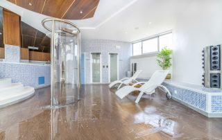 El recorrido por la sauna finlandesa y la sauna turca se vive como un ritual compartido: calor, calma y respiración para soltar tensiones y sentirse mejor. Después, las duchas bitérmicas y las duchas de aromas aportan contraste y sensaciones, despertando el cuerpo y creando ese “reinicio” tan buscado en una escapada de bienestar. El broche llega con la ducha Vichy, una experiencia envolvente y revitalizante que termina de dejar una sensación de renovación profunda.