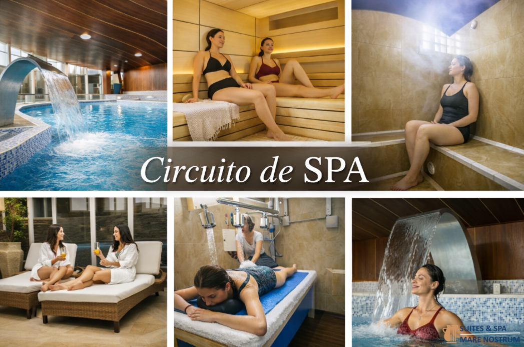 Sumérgete en un auténtico oasis de bienestar en nuestro circuito spa en la provincia de Salamanca, un espacio concebido para que el descanso, la salud y el cuidado personal se integren en una experiencia completa. En el Hotel & Spa Mare Nostrum cada detalle está pensado para ayudarte a desconectar: una atmósfera serena con luz ambiental suave, una sensación constante de calma y un entorno cuidado para que recuperes energía desde el primer minuto. Nuestro circuito combina hidroterapia y termoterapia para favorecer la relajación muscular, aliviar tensiones y mejorar la sensación general de bienestar, convirtiéndolo en una opción perfecta tanto para una escapada en pareja como para una pausa de autocuidado durante tu viaje por Salamanca.